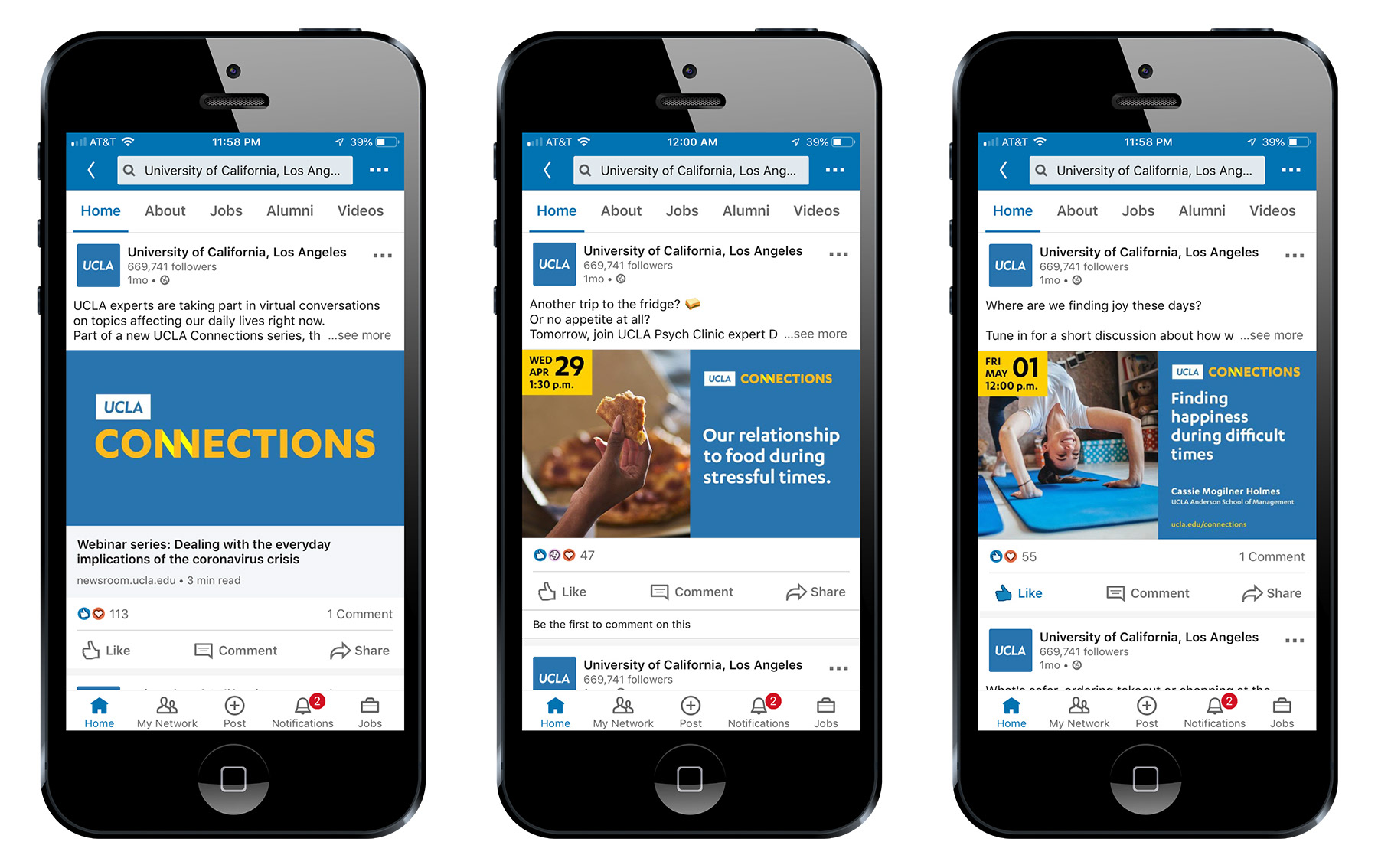 Due to stay-at-home orders during the COVID-19 pandemic, various UCLA campus partners developed online initiatives to keep everyone informed. A common theme among all of UCLA’s initial online messaging, was that of providing positivity during this time of crisis. To build community, connectivity, and foster resilience during these challenging times, a series of short, 20-30 minute interviews with UCLA experts, highlighting areas of research to help everyone cope was launched via Zoom. An online brand identity was developed and implemented to all virtual touch points, including website, emails, and social media posts.